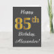 Tarjeta Gris, Faux Gold 85th Birthday + Nombre personaliza