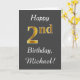 Este sencillo diseño de tarjeta de cumpleaños incluye el mensaje "Feliz segundo cumpleaños", y el "segundo" tiene un aspecto falso de oro. También incluye un nombre personalizado y un fondo gris. Podría ser dado a alguien que esté celebrando su segundo cumpleaños.