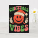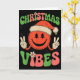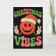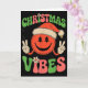 Tarjeta Groovy Christmas Vibes Smile Face Santa Hat Xmas T
