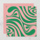 Tarjeta Groovy Retro Swirls Rosa y Verde