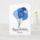 Tarjeta de 18 años con un diseño azul de globos. Esta tarjeta tiene un aspecto moderno y es perfecta para un hijo, nieto o sobrino en su decimoctavo cumpleaños. La edad, el nombre del hombre y el mensaje interno se pueden personalizar como se desee.