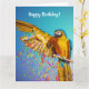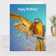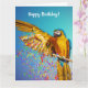 Tarjeta Guacamayo azul y amarillo lanza confeti
