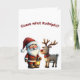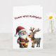 Santa’s got a surprise—and Rudolph’s all ears! This whimsical Christmas card features a cartoon Santa and his famous reindeer in a snowy forest moment of holiday cheer. With bold red lettering and a lighthearted setup, it’s perfect for kids who love giggles, reindeer games, and festive cheer. A joyful way to spread smiles this season!