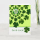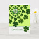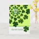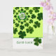 Tarjeta de saludo de papel Guid Luck. Suerte de Dios = Buena Suerte en idioma escocés. Texto interno: La suerte de guid va con vosotros, aye = Buena suerte siempre os acompañará. Tarjeta de felicitación de la Buena Suerte con un coraje de shamrock. Chispas verdes con flor de trébol blanco. Arte, imagen y verso copyright © Shoaff Ballanger Studios, 2021.