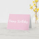La tarjeta de cumpleaños White Script Pink Happy Birthday presenta un color rosa único contra un guión blanco.