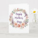 Tarjeta del Día de la Madre con Corona Floral de Acuarela Elegante Rosa