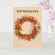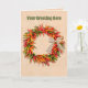 Personaliza esta tarjeta con tu saludo en la parte frontal y en el interior y añade cualquier mensaje adicional que desees. Este diseño presenta una colorida guirnalda de ristras de chile atada con un lazo de rafia sobre un fondo de pared de adobe. Mi pintura original se inspiró en las ristras y guirnaldas de chile que colgué en mi hogar en Nuevo México. Las ristras son un símbolo de bienvenida que se dice que trae buena salud y buena suerte.