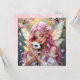 Tarjeta Hada de pelo rosa y bebé dragón blanco manta