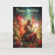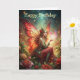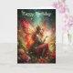 Un hada de bonito roja en un jardín de flores. Adecuado para una tarjeta de cumpleaños para cualquiera. Puede cambiar el texto
