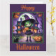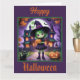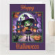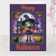 Una adorable bruja y su mascota gato están listos para Halloween en esta divertida y espeluznante tarjeta de Halloween. Añade tu propio texto personalizado.