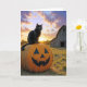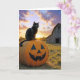 Tarjeta Halloween Black Cat On Pumpkin Hay Bale