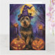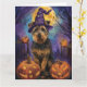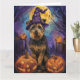 Tarjeta Halloween, bruja y calabaza de Airedale