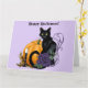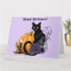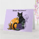Tarjeta Halloween de calabaza de Rosa morado de gato negro