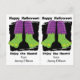 Esta linda postal de Halloween está diseñada para ser fácilmente cortada en dos cartas. La imagen es de pies verdes monstruo en pantalones morados sobre un fondo negro. El texto negro de arriba dice "Feliz Halloween", y debajo "Disfruta de la brutalidad" con tu firma. Perfecto para estudiantes de primaria o preescolar que den a sus amigos en la fiesta de la escuela de Halloween, ¡y económico también! ¡Y los profesores también pueden personalizar que se dé a los estudiantes!