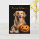 Envíe sonrisas y vítores de Halloween con nuestra adorable tarjeta Golden Retriever, diseñada para traer alegría y risas a la espeluznante celebración de cualquiera.