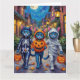 Tarjeta Halloween de truco o tratamiento de gatos azules o