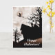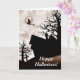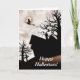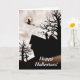 Tarjeta Halloween es una casa embrujada con bruja en la ha