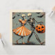 Celebra Halloween con estilo con esta tarjeta de felicitación cuadrada que presenta una ilustración inspirada en el vintage que combina perfectamente el encanto espeluznante con el encanto retro juguetón. Esta encantadora tarjeta muestra a dos esqueletos alegres que caminan con un paso alegre, claramente disfrutando de la magia espeluznante de la temporada de terror. El esqueleto femenino está vestido para impresionar con un vestido a rayas animado que se balancea con cada paso óseo, dándole la mezcla perfecta de espeluznante y elegante.