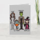 Este lindo ilustracion personalizado presenta a una madre, papi Frankenstein, hombre pequeño y una niña bruja, lo que lo convierte en la perfecta adición linda y única a tus saludos de Halloween. Ideal para celebrar Halloween con toda la familia.