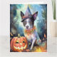 Tarjeta Halloween ganado australiano con calabazas aterrad