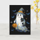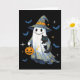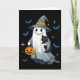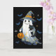 Tarjeta Halloween Ghost Witch Holding Black Cat Funny Hall