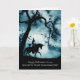 Gran tarjeta de nieta de una bruja montada en unicornio con un búho y un gato. Super lindo y toda la silueta por una gran luna.