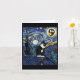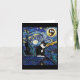 Tarjeta Halloween Noche estrellada Tuxedo Cat Comma La Kam