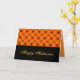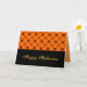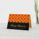 Una tarjeta personalizado de Halloween con cruces negras en un naranja oscuro con Feliz Halloween en un guion gélido. Haga clic en Personalizar para cambiar el color de fondo, agregar texto y más.