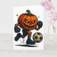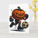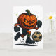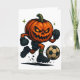 Tarjeta Halloween Scary Pumpkin Showing Soccer Skills Spoo