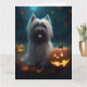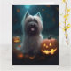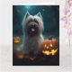 Tarjeta Halloween Skye Terrier con calabazas aterradoras