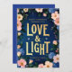 Envía bendiciones de Hanukkah con elegancia y encanto usando esta floral tarjeta de vacaciones "Amor y Luz". La inscripción dorada, con un rico fondo azul marino, está enmarcada por una exuberante disposición de flores acuarelas en tonos suaves y azules. Esta tarjeta, que combina la calidez de la temporada con detalles artísticos, es perfecta para celebrar Hanukkah con amigos y familia. Personaliza con tu nombre y año para un saludo verdaderamente especial.