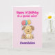 Happy 1st Birthday card for niece with adorable puppy, cake and balloons. Fully customizable message inside, personalize with your niece's name and change text as you wish / add more. Delete inside text to write by hand. Instant download possible. Happy first birthday to a special niece! Designed and texted by Best Baby Gifts - given with love.