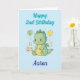 Tarjeta Happy 2nd Birthday, Cute Dragon, Personalized