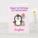 Tarjeta Happy 3rd Birthday Niece, Penguin, Personalized