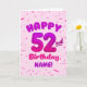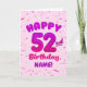 Tarjeta Happy 52nd Birthday Card with Custom Name