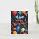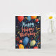 Bright, bold, and bursting with party energy — this Happy Happy Birthday card is made to make someone’s special day feel unforgettable. The deep, dramatic background sets the stage for a lively explosion of colorful balloons, confetti, streamers, and festive leaves, creating a design that feels joyful the moment it’s opened.