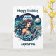 A fun horoscope sign Aquarius birthday card with an inside surprise coloring page. The front has a pretty celestial illustration of a water bearer woman in front of stars and a full moon/