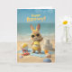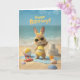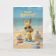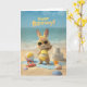 Celebrate their special day with a splash of sunshine and fun. This adorable beach-themed birthday card features a cheerful bunny in a bright yellow swimsuit and sunglasses, surrounded by ocean waves, seashells, and sandy summer vibes. Perfect for anyone who loves the beach and a playful, happy birthday celebration.