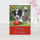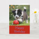 This dog lovers birthday card features a puppy border collie playing with a red ball. The card has a Happy Birthday on the front and an inside message. A template design that you can edit to add your own words or image. "AI-generated artwork with design direction by Susang6"