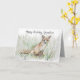 A custom birthday card featuring a young desert gray fox in a patch of grasses hand drawn with pencil and colored pencils. The gray fox is smaller than the red fox and can climb trees. On the inside is a coordinating shade of gray and text you can edit to fit your needs.