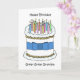 A simple illustration of a white birthday cake, iced with delicate lemon coloured flowers. The cake has a blue bow tied around it and several lit candles on top. The image is set against a white background and is accompanied by the words 'Happy Birthday Great Great Grandpa.