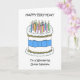 A simple illustration of a white birthday cake, decorated with lit candles on top and a blue bow tied arund it. The image is set against a white background and accompanied by the words 'Happy Birthday to a wonderful great nephew'.