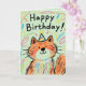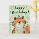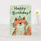 Tarjeta Happy Birthday Scribble Cat Card Pastel Green