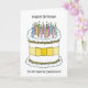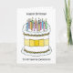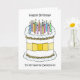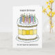 A simple illustration of a white birthday cake decorated with lit candles on top and a lemon colored bow tied around it. The image is accompanied by the words 'Happy Birthday to my favorite detectorist'. The image is set against a white background.