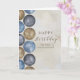 Simple birthday card for anyone has watercolor circles in masculine colors of blue, gray and brown on a distressed tan background.