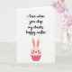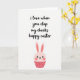 Designed with a bright white background, this card keeps the layout simple while drawing your eye straight to the message and the cute character below. Across the upper area, black cursive-style lettering reads, “i love when you clap my cheeks happy easter,” with the words stretching wide and leaving generous space around them. Under the text sits a small bunny-like figure in soft pink and coral, giving off a flirty, teasing tone 🐰. Its round head has shiny black eyes and two rosy cheek circles that make it look like it’s blushing at someone just out of frame. Two tall ears rise upward with gentle shading, adding height and a light springtime feel 🌷. The body shifts into a candy-wrapper shape in brighter pink, dotted with evenly spaced circles that add texture without crowding the design. The lower wrapper edge forms a scalloped line, like folded paper gathered at the bottom.