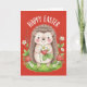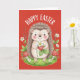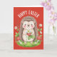 Tarjeta Happy Easter Cute Hedgehog Holding Strawberry