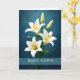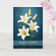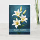 Tarjeta Happy Easter Elegant White Lilies Blue Background