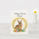 Happy Easter Friend > Watercolor Rabbit & Forsythia Wreath Card (Editable Template)