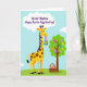 This design shows a cheerful spring scene with a tall, yellow, long-necked creature on the left, dotted with warm brown spots and wearing a friendly, star-shaped eye as it holds a striped egg in its mouth 🐰. Its gentle tilt toward the center gives the moment a buddy-like closeness, as if it’s proudly showing off its find. On the right, a sturdy tree with a rounded, leafy green top is covered in hanging eggs, each decorated with different patterns in fuchsia, lavender, sky blue, and other soft shades. At the base of the tree sits a brown woven basket, filled with more decorated eggs, adding to the sense of an ongoing hunt shared together. Behind everything, a soft blue sky fades into a green patch of grass, with puffy white clouds floating above 🌷. Near the top, a large cloud holds the message “Great Nephew Happy Easter Egg Hunting!” in purple lettering, centered so it stands out clearly. The creature’s small antenna-like nubs and the egg’s orange, blue, and yellow stripes add extra detail to the left side of the scene. The tree’s eggs appear scattered across the canopy, with varied dots and zigzags against the deep green leaves.